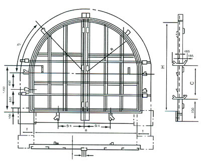 說明:斜風(fēng)井防爆門標(biāo)準(zhǔn)設(shè)計(jì)適用于最大負(fù)壓3500Pa抽出式通風(fēng)機(jī)。